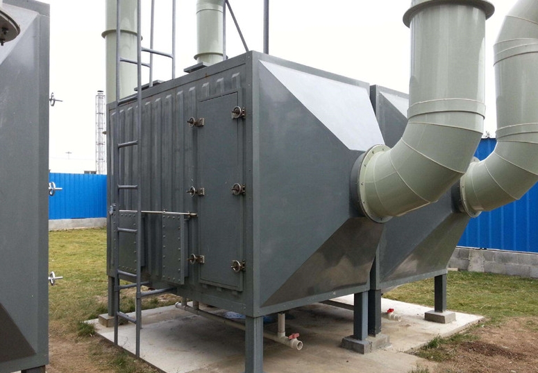 工作原理:有机废气支管收集进主管→活性炭吸附装置/塔→耐腐蚀风机→排气烟囱